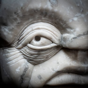 Human Debris are fragments of marble discarded from quarrying, stones recovered along the paths of the Apuan Alps to be brought back to life. My goal is to elevate them from their state of waste, restoring their meaning and dignity. These stones take on semi-human forms to express deep emotions through facial features, which merge with the stone in a sharp contrast between the softness of the lines and the roughness of the raw rock. This material, which preserves all the prestige of Carrara marble intact, is sculpted exclusively with manual tools. The result is unique sculptures, born from the dialogue between the millennial work of nature and an artistic vision that digs deep